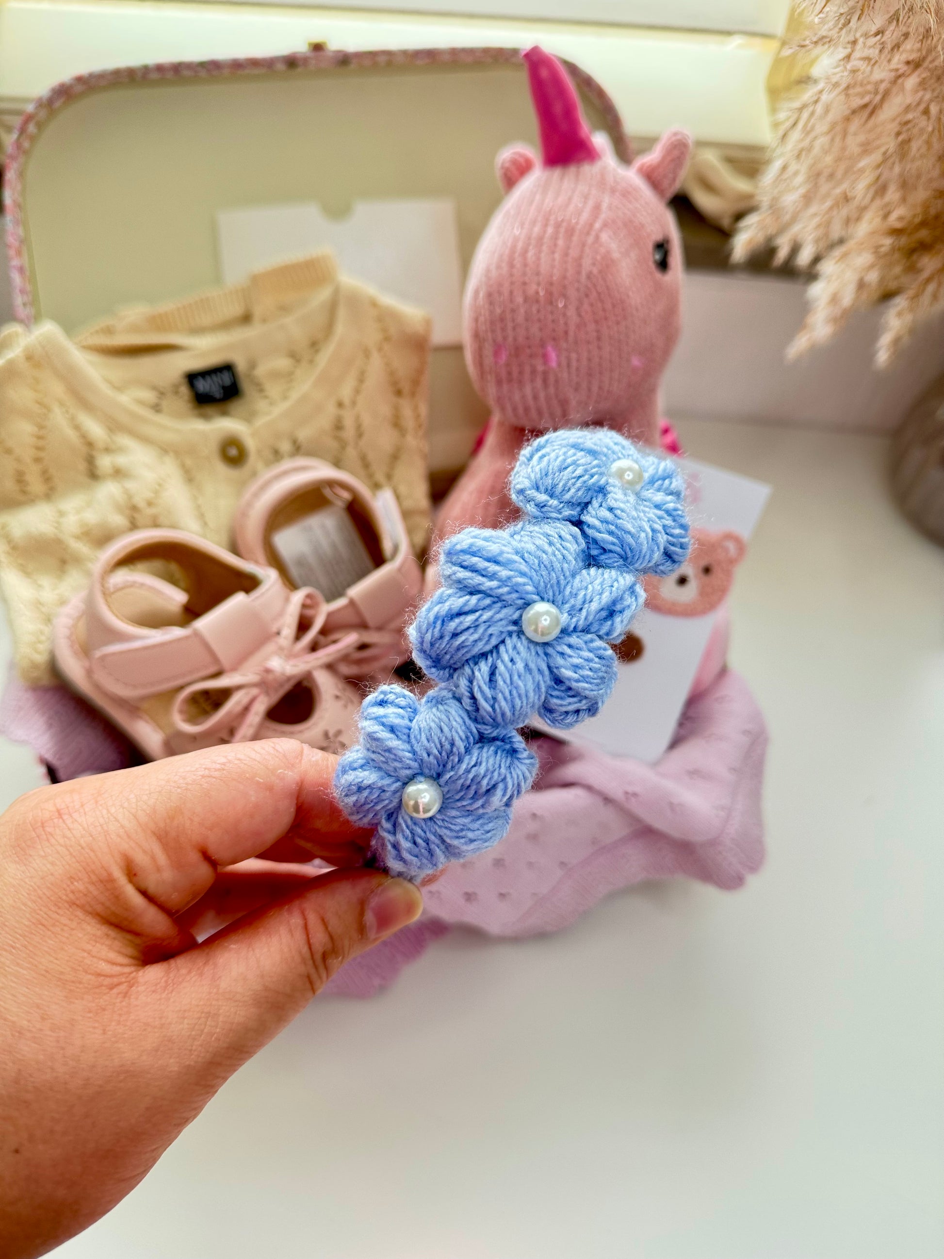 Onze Lily Bloom diadeem is een dromerig accessoire voor peuters en jonge kinderen. Elk exemplaar is met de hand gehaakt en versierd met zachte bloemen, afgewerkt met een pareltje of goudkleurig kraaltje in het hart. De diadeem is gemaakt van licht en flexibel plastic en is comfortabel om te dragen, ook tijdens lange speeldagen.