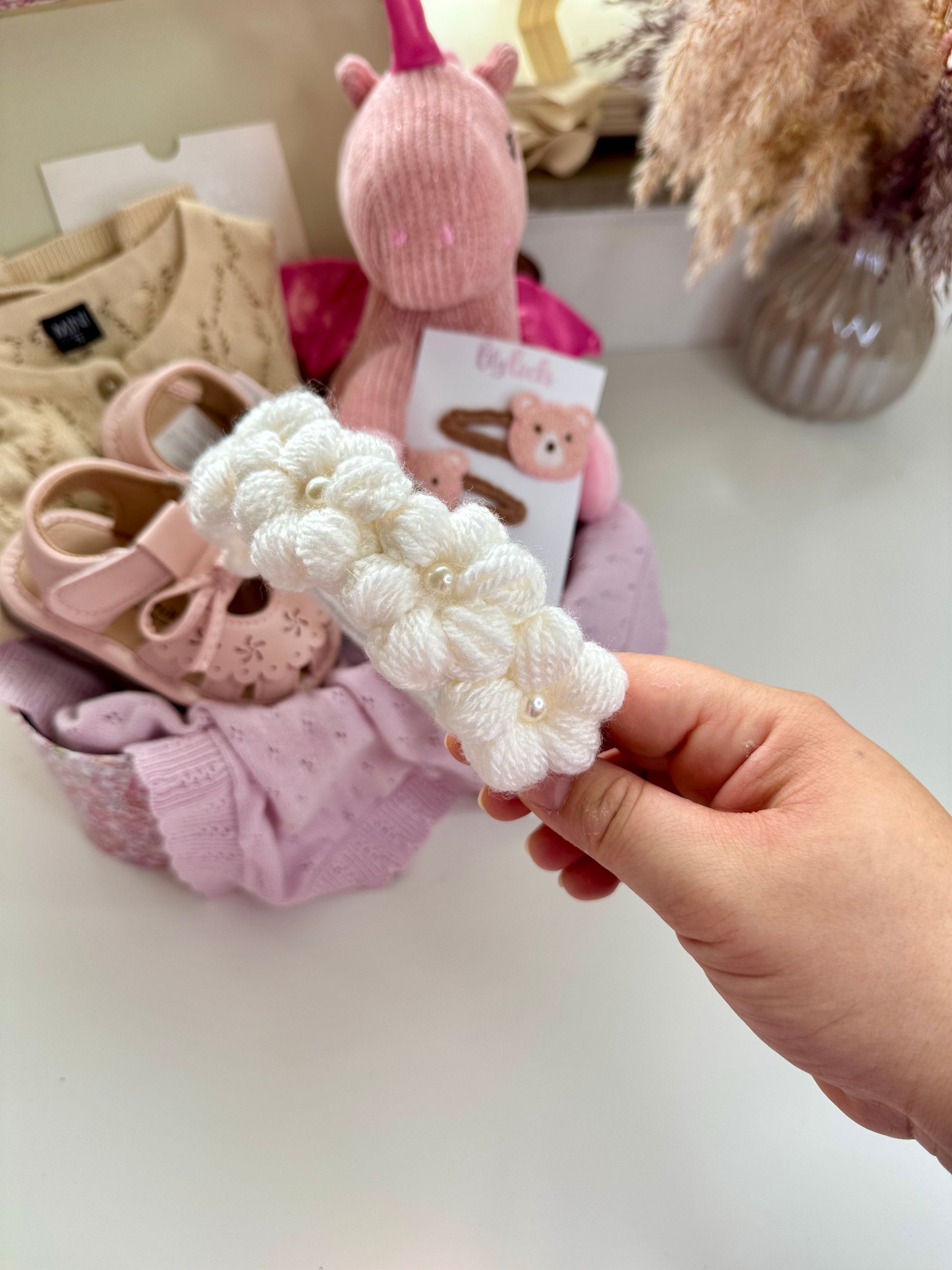 Onze Lily Bloom diadeem is een dromerig accessoire voor peuters en jonge kinderen. Elk exemplaar is met de hand gehaakt en versierd met zachte bloemen, afgewerkt met een pareltje of goudkleurig kraaltje in het hart. De diadeem is gemaakt van licht en flexibel plastic en is comfortabel om te dragen, ook tijdens lange speeldagen.