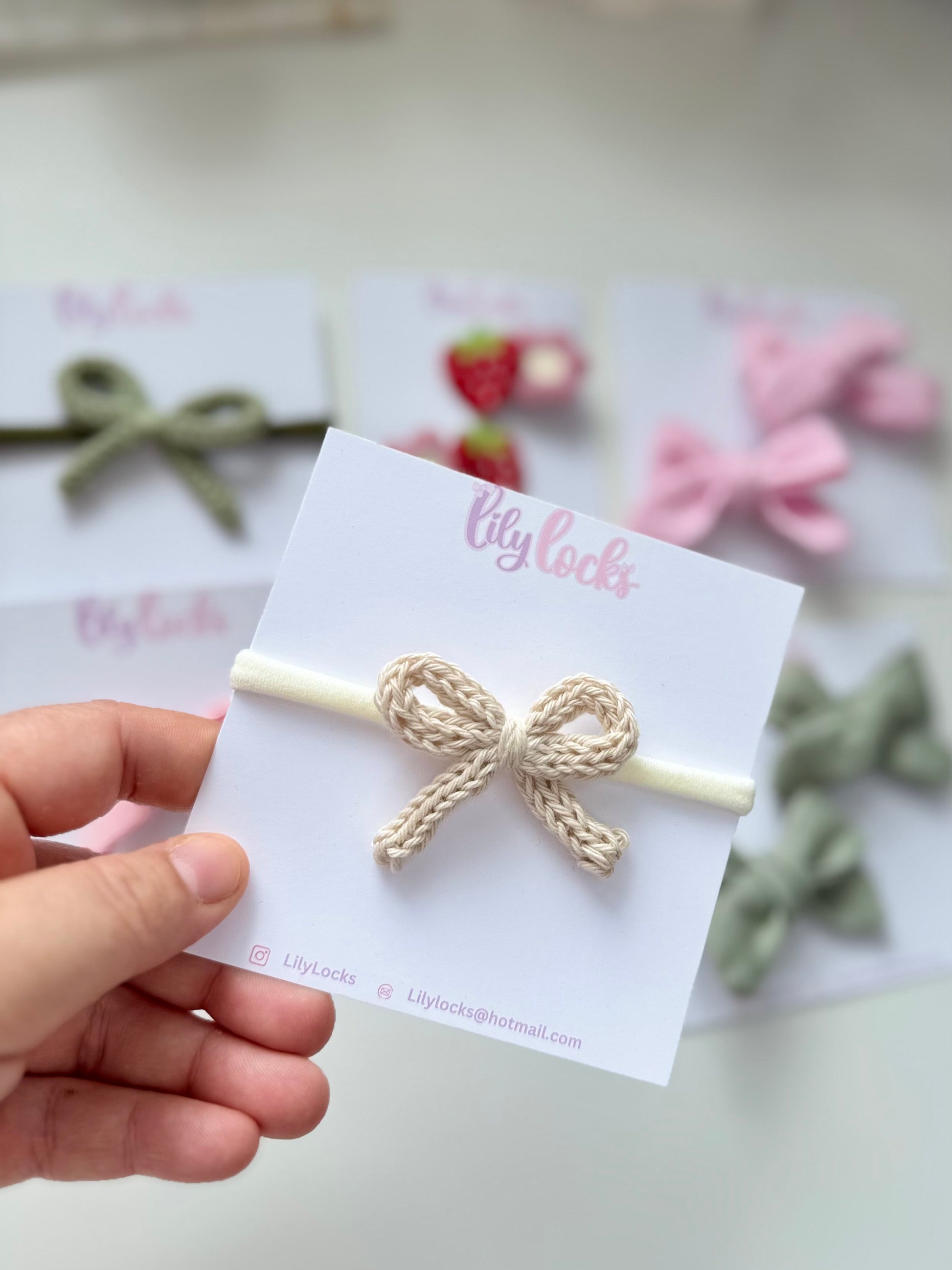 Onze handgemaakte Lily Knot haarbandjes combineren eenvoud, zachtheid en charme. Elk strikje is zorgvuldig gehaakt van stevig garen en subtiel afgewerkt met een klein gouden hartje – een elegant detail dat elke look net dat tikkeltje bijzonder maakt. Het zachte, rekbare nylon bandje zorgt voor optimaal comfort, van pasgeborene tot peuter.